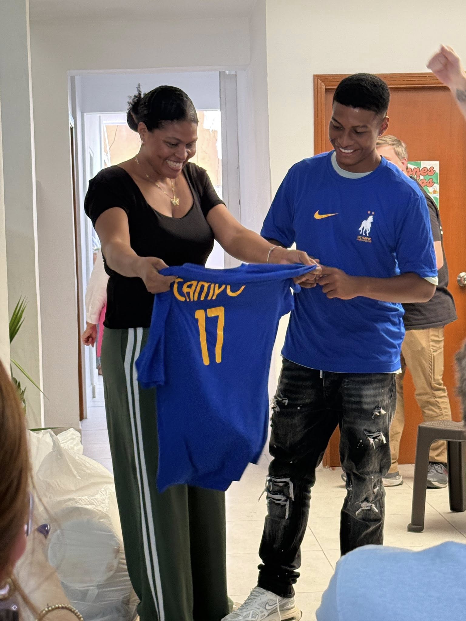 Flash forward to the summer of 2025. He was called up to the pro team, #17, Olympic Club Deportivo. And on Sunday, June 1, he had his first jersey signing party with his first fan club, his church family.